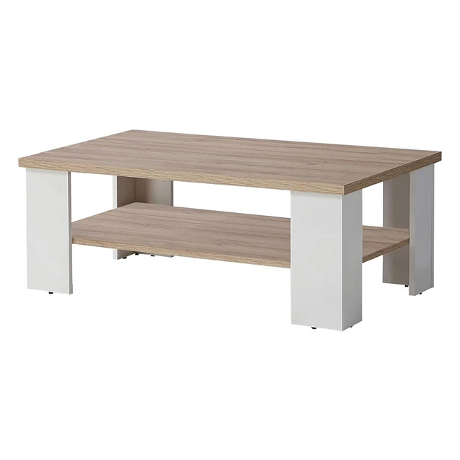 Forte Elara Couchtisch mit Regal, Komposit-Holz, weiß matt, Bianco Eiche, 107 x 42 x 67 cm