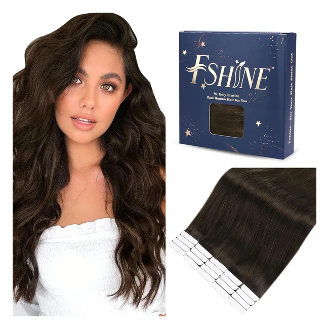 Fshine Adesivo Capelli Veri Invisibili Extension 50cm 20pcs Tape In Castano Scuro Capelli Lisci Extension 50g Biadesivo Capelli Extension Colore 2