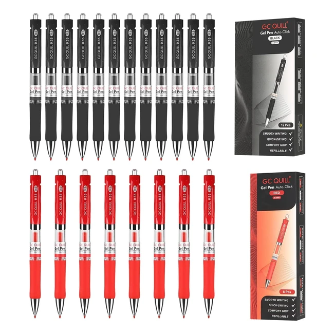 GC Quill Penne a Sfera Roller Gel 12 Nere 8 Rosse GC-GP20