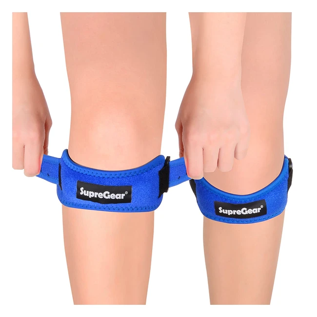 Genouillère Supregear avec sangle de support de tendon rotulien - Pack de 2 - Idéal pour la course et le volleyball - Bleu