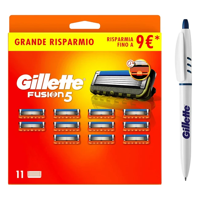 Gillette Fusion 5 - Lamette da barba 11 ricambi - Rasatura scorrevole - Lama antiattrito - Striscia lubrificante