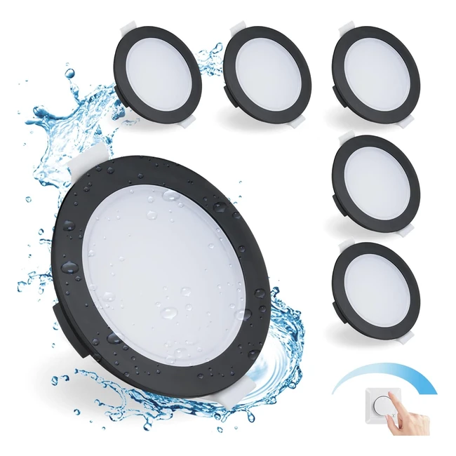 GR4TEC LED Einbaustrahler 230V dimmbar 6x IP65 LED Spots schwarz neutralweiß 4000K 6W 400lm Deckenspots LED 6880mm flach 35mm Einbau