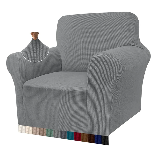 Granbest High Stretch Armchair Covers - Super Soft Chair Covers for Living Room - Jacquard Sofa Cover - Non Slip Chair Slipcover - 1 Seater - Light Gray