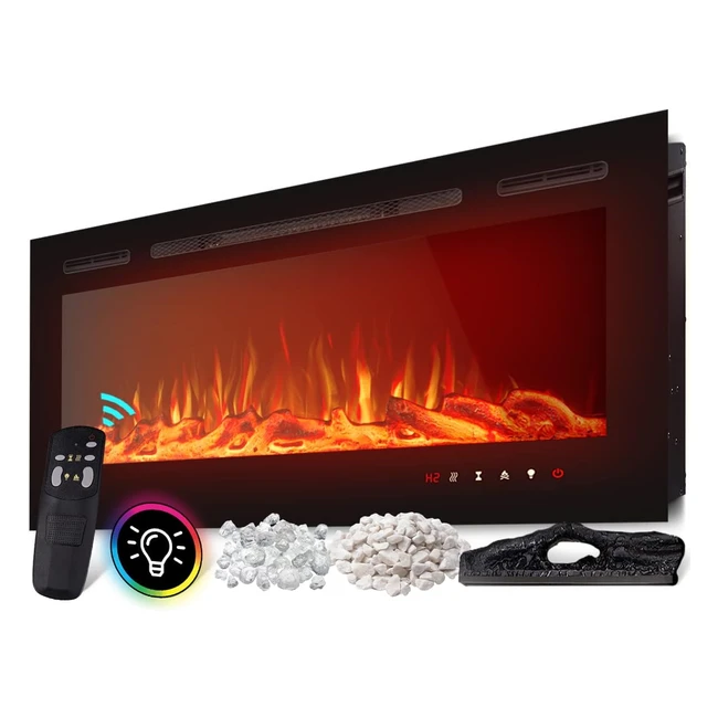 Heidenfeld Elektrokamin HFWK200 Wandinstallation 3in1 Deko-Austausch 1500 Watt LED-Farbwechsel 3D-Flammen Wandkamin 1000 x 550 cm Schwarz