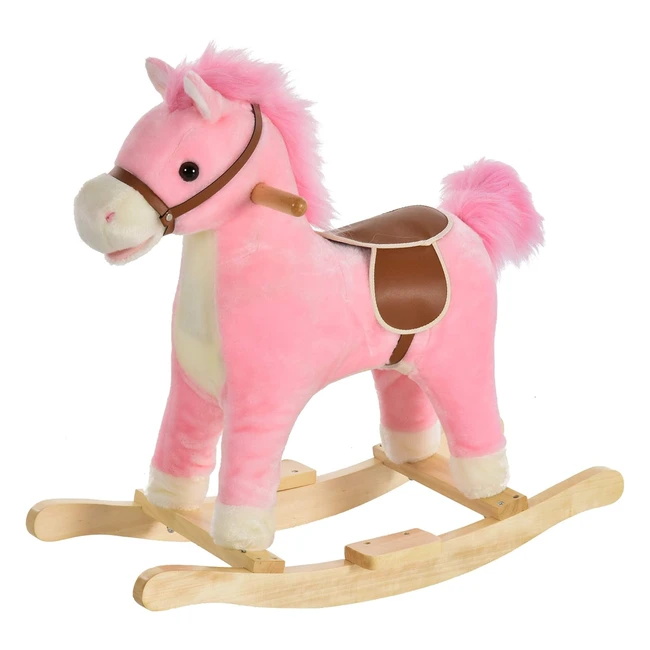 Homcom Kinder Schaukelpferd Baby Schaukeltier Pferd mit Tiergeräuschen Spielzeug Griffe für 3672 Monate Plüsch Rosa 65 x 325 x 61 cm