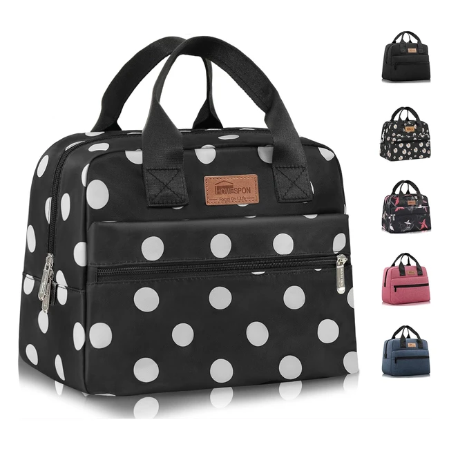 Homespon Insulated Lunch Bag - Large Capacity Tote for Work, Picnic, or Travel - Black Dots