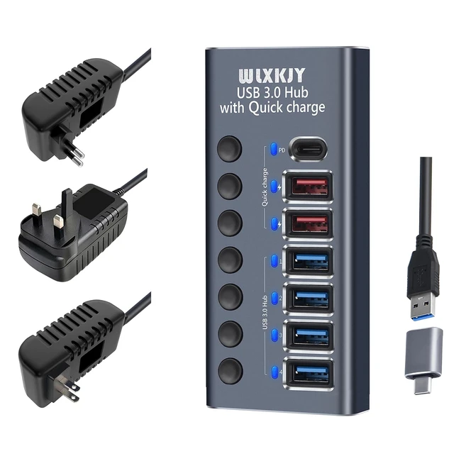 Hub USB 3.0 en aluminium avec 36W 12V3A - Wlxkjy 7 en 1 USB Hub