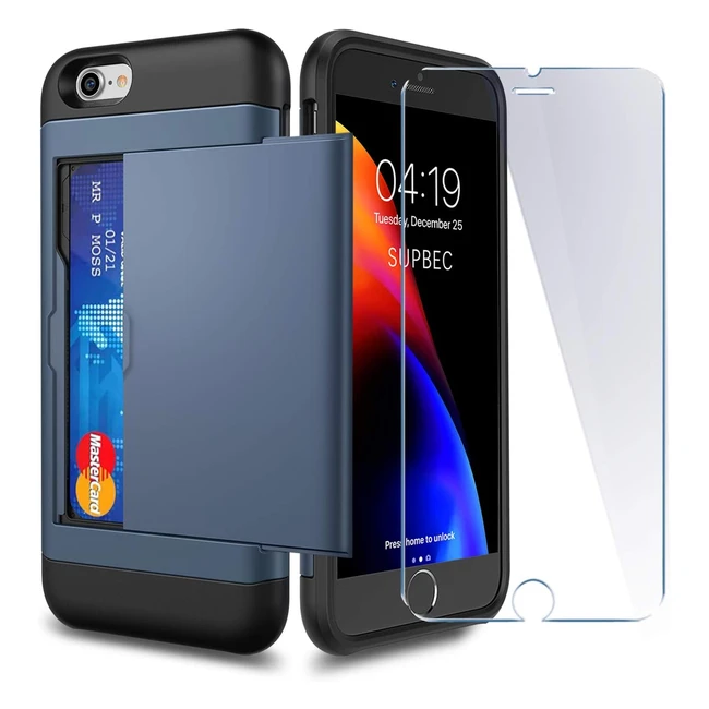 iPhone 7 8 SE 2020 Wallet Case with Card Holder and Screen Protector x2 Pack - Supbec Navy Blue