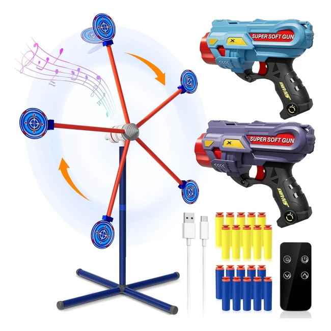 Nouveaux jouets de jeu de tir à la cible rotatifs pour enfants. Défis amusants, effets sonores dynamiques. Cadeau idéal pour garçons de 5 à 10 ans. Facile à assembler et à utiliser. Livré avec pistolets, fléchettes en mousse et instructions.