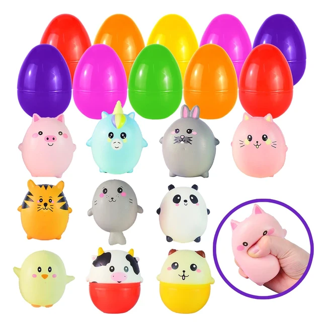 Ensemble complet de super valeur les ufs de paques preremplis comprennent 10 morceaux dufs fournis avec des jouets squishy toy animaux mignons une surprise parfaite a paques plaisir illimite notre mastic visqueux licorne offre des heures de jeu amusant aux enfants excitezles avec une surprise dans un uf de paques haute qualite ideal pour levenement de chasse aux ufs de paques les paniers de paques les sacs de cadeaux les sacs de cadeaux les recompenses pour les salles de classe les cadeaux de vacances les sacs a main le pack de jouets printempsete la boite de prix pour la maison lheure du bain une fete a theme des activites scolaires des carnavals etc securite pour les enfants sans danger pour les enfants nontoxique conforme a la norme americaine sur les jouets test de securite approuve satisfication de la clientele satisfaire nos clients a 100 est notre principale priorite nhesitez pas a nous envoyer un message par lintermediaire de contact sellers si les produits ne repondent pas
