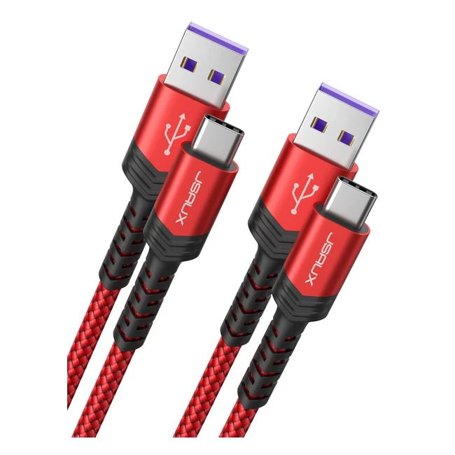 JSAUX 5A USB C Cable 1m 2Pack | Huawei Super Charge Type C Fast Charging Charger Cord | Compatible for Huawei P40 P30 P20 Mate 30 Pro 20 X 10 Pro | Red