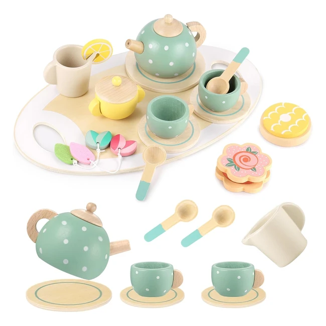 Juego de T de Madera para Niños Pequeños - Accesorios de Cocina - Fiesta de T - 15 Piezas