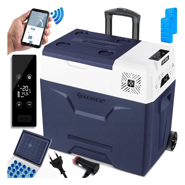Kesser Kompressor Kühlbox elektrische Gefrierbox 50 Liter mit App-Steuerung USB-Anschluss 12/24 V 230 V Teleskopstange 2 x Eispacks Räder Kühlschrank Kühlung bis zu 20 °C für Auto LKW Boot