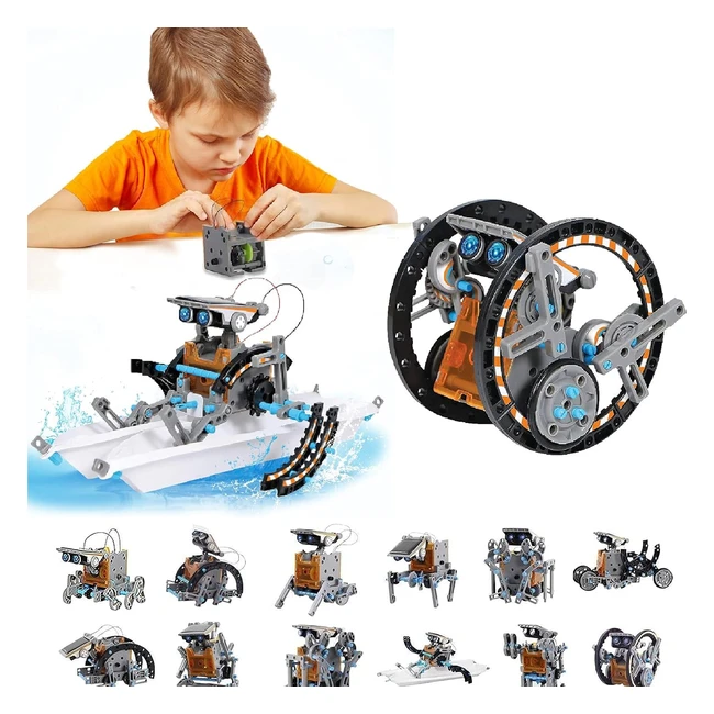 Kit di montaggio solare 12 in 1 con 190 pezzi. Costruisci 12 diversi tipi di robot in un unico kit. Giocattoli educativi per bambini 8-12 anni. Attira i tuoi piccoli architetti per sviluppare la manualità dei bambini, migliorare il pensiero logico, la fiducia in sé stessi e promuovere il lavoro di squadra. STEM giocattoli per bambini da 8-12 anni. Regalo per ragazzi. Attivazione dal sole. Kit scientifico per bambini di età compresa tra 8 e 12 anni. Contiene un pannello solare che raccoglie l'energia solare in un motore elettrico che aziona gli ingranaggi in modo che la macchina funzioni senza intoppi. I robot assemblati dai bambini possono utilizzare l'energia solare per galleggiare, arrotolare e nuotare. Giocattolo educativo per bambini da 10 a 12 anni. Ideale per ragazzi e ragazze. Ottimo giocattolo robot che incoraggia il bambino a imparare giocando. Prova le caratteristiche del fai da te. Kit scientifico per bambini di età compresa tra 10 e 12 anni che aiuta i bambini a creare una