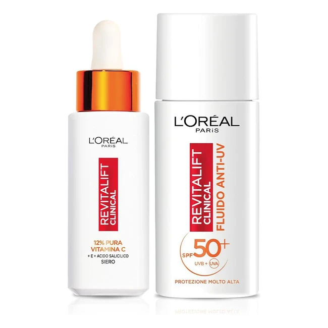 L'Oréal Paris Routine Illuminante e Protettiva con Siero 12 Pura Vitamina C e Fluido SPF 50 - Revitalift Clinical 30ml / 50ml