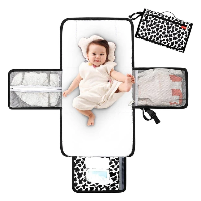 Lekebaby Nappy Changing Mat - Portable Mat with Wipe Pocket and Head Cushion - Cow Stria
