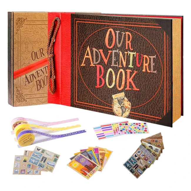 Libro Avventura in Pelle 1192 x 762 - 80 Pagine Lettering Rilievo - Up - Foto Matrimoni - Viaggio - Scatola Regalo - Fatto a Mano
