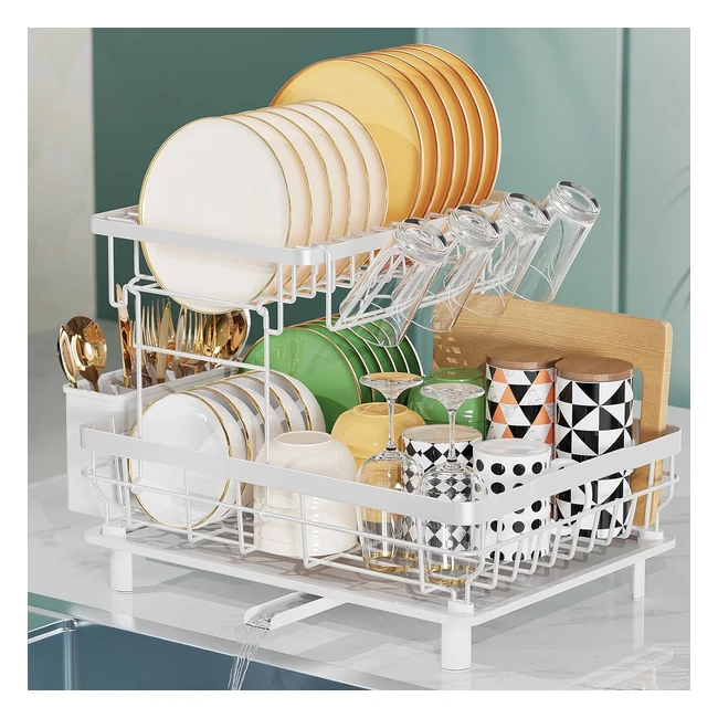 Upgrade your kitchen with our large dish drying rack featuring an automatic drainage system and a double-decked design for all your cookware needs. Stable construction with anti-slip feet. Get yours now!