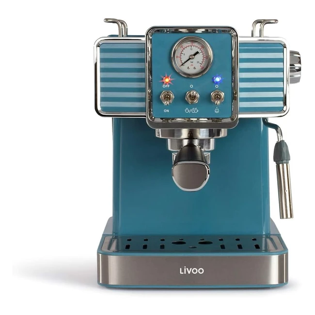 Machine Café Expresso 15 Bars Livoo DOD174 - Chauffe Thermoblock - Buse Vapeur pour Cappuccino - Look Rétro Bleu