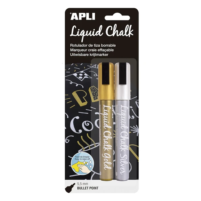 Marqueurs Liquide Or Argent Apli 14847 - Pointe Ronde 55mm - Effaçable - Tableau Vert Ardoise