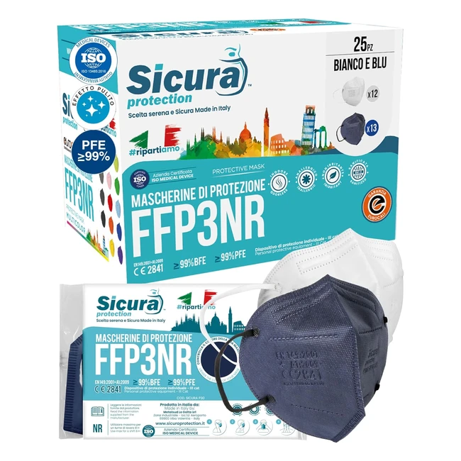 Mascherine FFP3 CE Blu e Bianche - BFE 99 - PFE 99 - Made in Italy - Certificato - Sicura - Sanificata - Sigillata