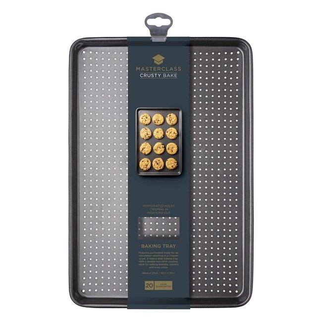 -31%Get crispier results with Masterclass's award-winning Crusty Bake Baking Tray. The perforated design allows heat to circulate for extra crispness. Made with high-grade electroplated carbon steel, this tray is warp and rust resistant. It's oven safe up to 220°C. The double coating of the powerful Quantum II non-stick ensures easy release and quick cleanups. Versatile and spacious at 39x27cm, it's perfect for family snacks and meals. Fridge, freezer, and dishwasher safe. Comes with a 20-year guarantee and 5 years of non-stick performance.