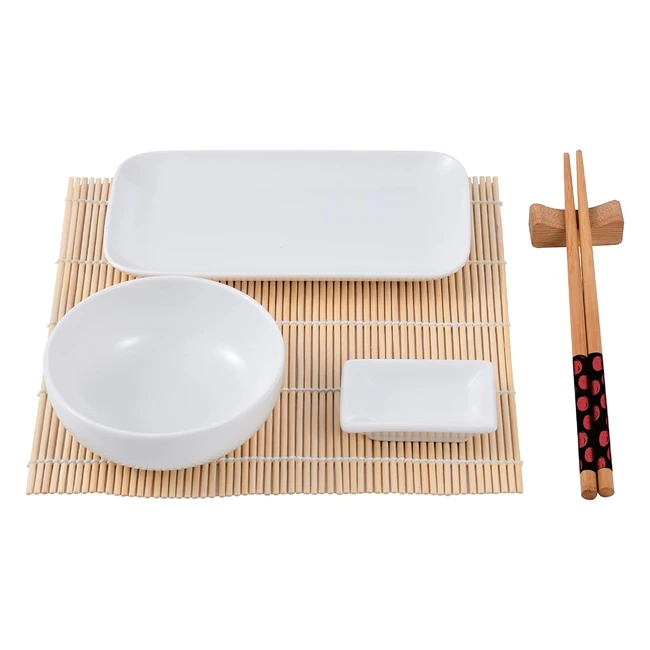 -26%Komplettset für 2 Personen mit Schalen, Tellern, Holzstäbchen, Bambusmatten. Traditionelles Design aus Porzellan, Holz und Bambus. Perfekt für die Zubereitung von Sushirollen. Genießen Sie japanische Rezepte im orientalischen Stil.