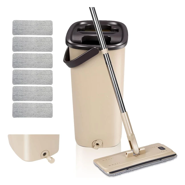Masthome Flat Mop and Bucket Set with Wringer - 6 Reusable Pads - Wet Dry Use