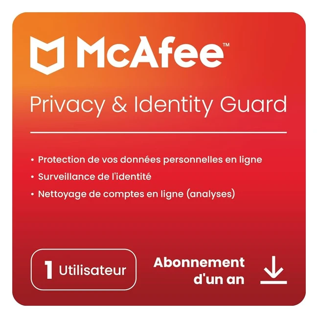 McAfee Privacy Identity Guard 2024 - Protection en ligne - Surveillance de l'identité - Nettoyage de comptes - 1 appareil - 1 usager
