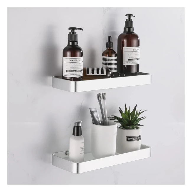 Mensola Doccia Bagno Montaggio a Muro Alluminio Vetro Smerigliato 2 Pezzi Argento