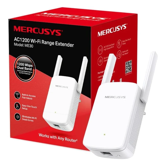 -33%AC1200 Dual Band WiFi Range Extender - Keep your whole home connected with strong WiFi expansion at combined speed of up to 1.2 Gbps. Eliminate WiFi dead zones, boost WiFi signal to previously unreachable areas. Easy one-touch setup, simply press the WPS button to expand your WiFi coverage in seconds. Built-in access point mode, connect your wired internet connection to the ME30 via Ethernet cable to turn it into a dual band WiFi access point. UK plug, plug and play - say goodbye to complex wiring and configuration. See more product details below.
