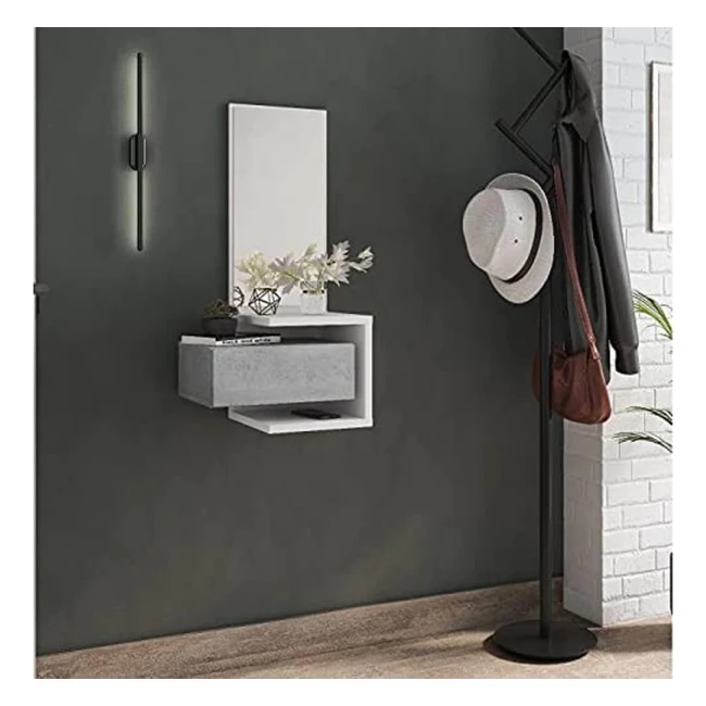 Mobile da ingresso con specchio e cassetto, cm 43x32h90, bianco e cemento
