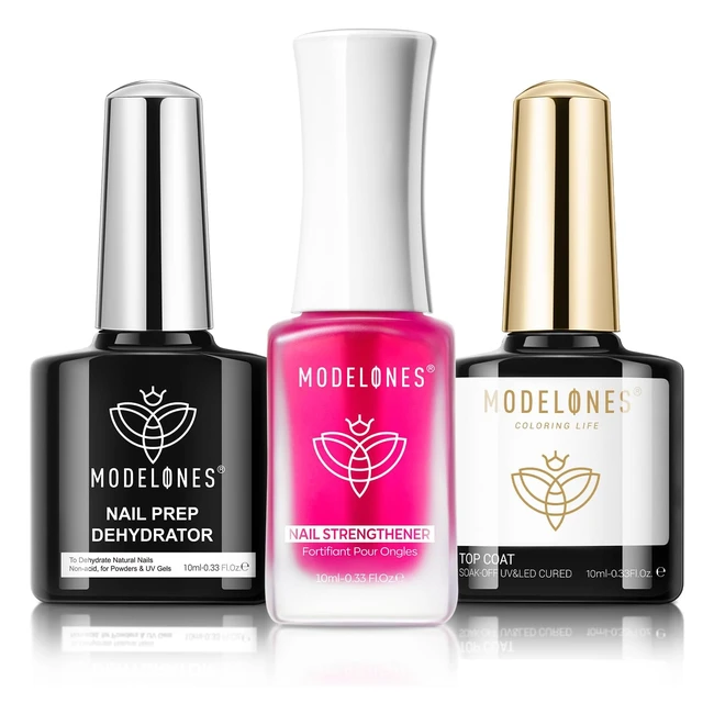 Modelones Nail Strengthener Treatment with Nail Dehydrator Gel Top Coat Set - Long Lasting & Extra Strong Nail Care