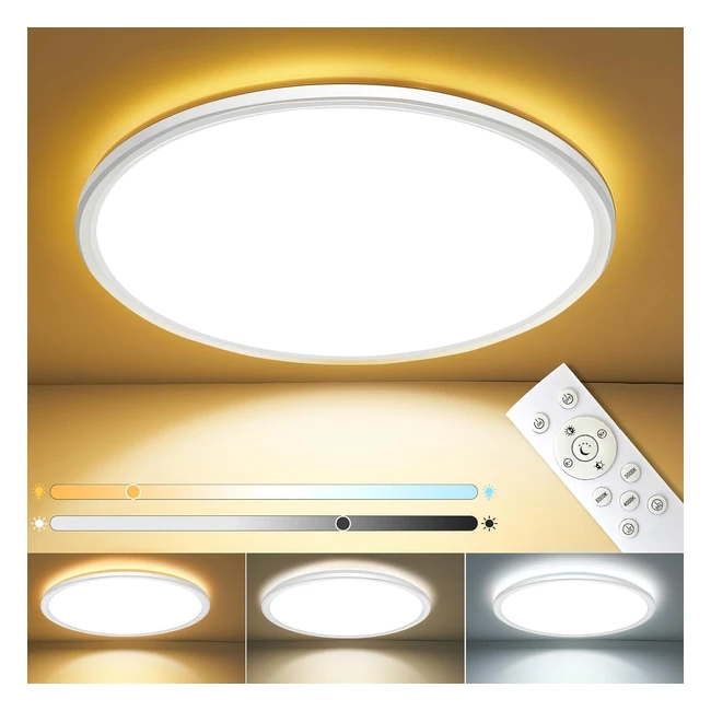 -24%Save 90% energy with this dimmable ceiling light, lasting over 50,000 hours. Backlight effect creates a halo of light, ultra-flat design fits any room. Eye protection with CRI of 83, adjustable color temperature and brightness. Memory function and night light mode for easy use. Easy installation design for hassle-free setup.