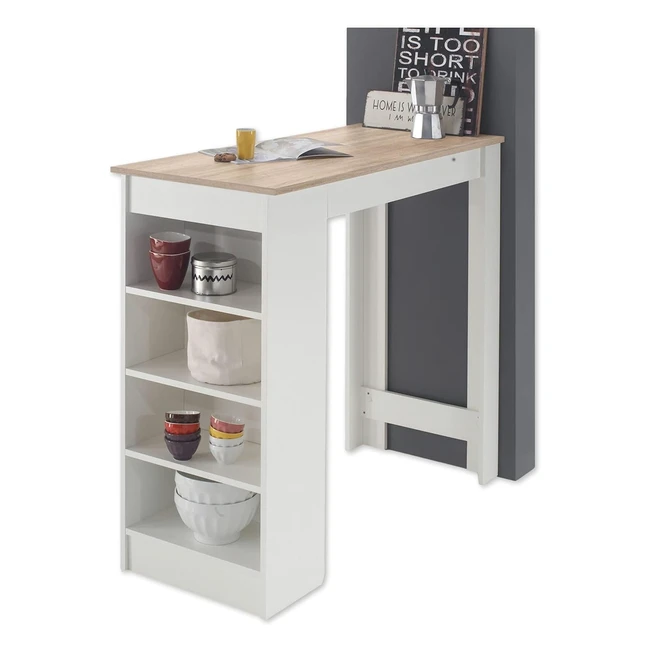 Mojito Modern Bar Tisch in Weiß Sonoma Eiche Look - Platzsparender Tresen für Küche und Esszimmer 115 x 103 x 50 cm