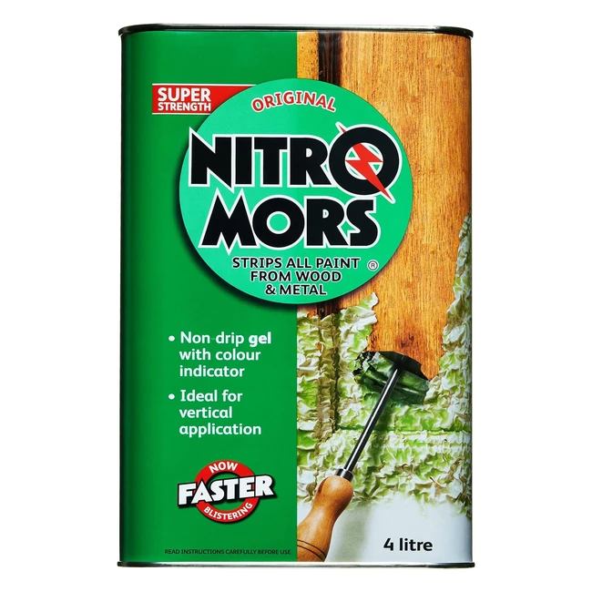-16%Get rid of paint, varnish, and lacquers with Nitromors Original Paint Stripper & Varnish Remover. Its fast-acting, non-drip gel formula clings to vertical surfaces, making it perfect for wood, metal, and concrete. Available in various sizes, this dichloromethane-free formula provides thick, green-colored gel application for easy visibility. With 4 liters covering up to 10m², it's the ultimate solution for your stripping needs. Buy now and transform your surfaces effortlessly!