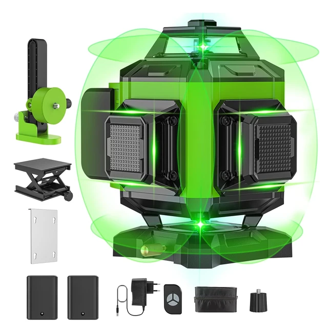 Niveau laser vert 4 x 360 laser chantier 4D 16 lignes 2 x batterie