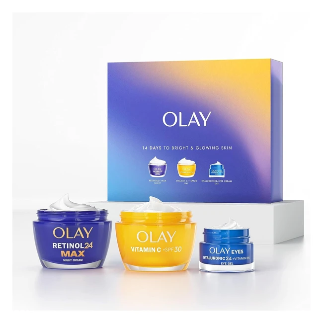 Olay Skincare Gift Set - Vitamin C SPF 30 Face Moisturiser, Retinol 24 Max Night Cream, Hyaluronic Acid Eye Cream - Christmas Gifts for Women