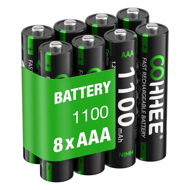 Oohhee 8 x AAA Rechargeable Batteries - High Capacity 1100mAh - Low Self-Discharge - 12V AAA - With Battery Protection Box