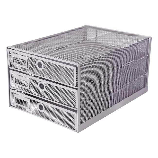 Organizzatore Scrivania Exerz 3 Cassetti Rete Metallica Argento