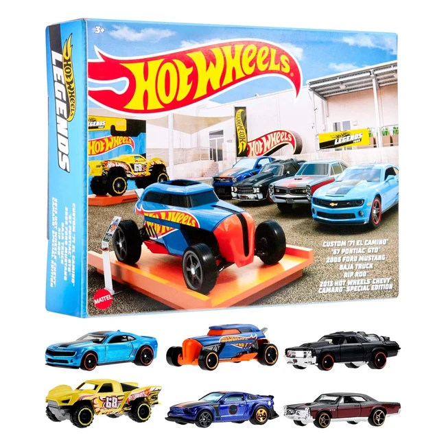 ¡Colecciona las leyendas de Hot Wheels! Este multipack incluye 6 vehículos con acabados auténticos y diseños realistas. Ideal para fans y coleccionistas. ¡No te lo pierdas!