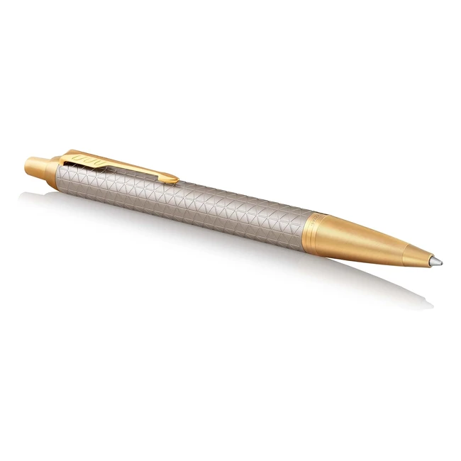 Parker 1931687 IM Premium - Penna a Sfera, Punto Medio, Inchiostro Blu, Warm Silver Golden Trim, Confezione da 1