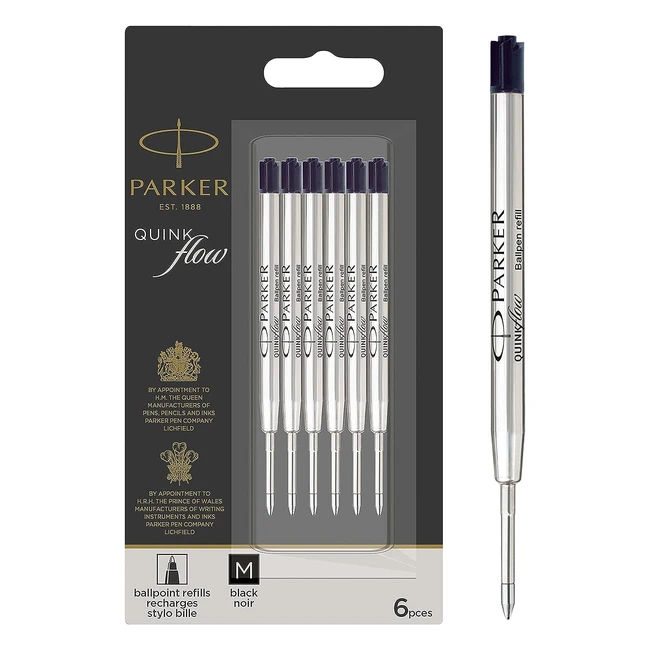 Parker Ballpoint Pen Refills - Medium Point - Black Quinkflow Ink - 6 Count Value Pack