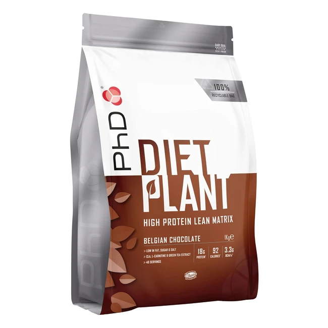 -19%Brucia il Grasso e Costruisci Muscoli con Diet Plant di PhD - Gusto Ottimo, Consistenza Morbida - 100% Vegetale - Energia dalle Piante - 18g Proteine - Con CLA, L-Carnitina, e Estratto di Tè Verde - Meno di 94 Calorie per Porzione - Imballaggio 100% Riciclabile