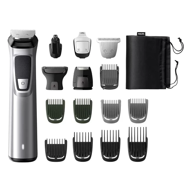 Get the ultimate grooming experience with the Philips Multigroom Series 7000. This 16in1 trimmer features metal trimmers, nose and ear trimmers, adjustable beard comb, stubble combs, body combs, hair combs, and more. With wet and dry capabilities, showerproof design, and easy cleaning, this trimmer is perfect for all your grooming needs. The full metal motor and reinforced drive train ensure maximum torque and power, while the unique cutting guards prevent bending and buckling for an even trim every time. The lithium ion rechargeable battery provides up to 5 hours of run time per charge. Buy now and step up your grooming game!