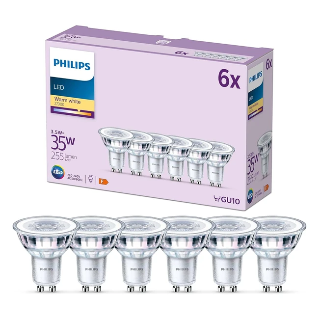 Philips Pack de 6 Ampoules LED GU10 35W 2700K Blanc Chaud - Économisez de l'Énergie et Protégez l'Environnement