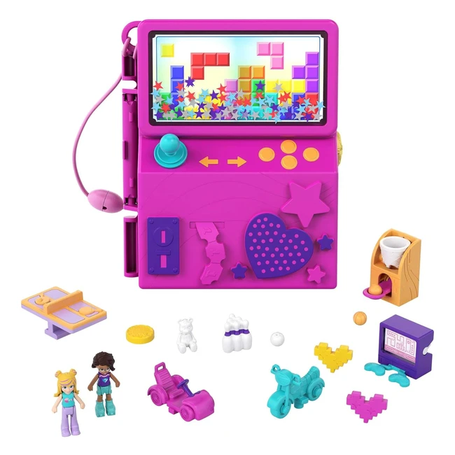 Polly Pocket Race Rock Arcade Compact Gaming Theme | Micro Polly & Shani Dolls | 12 Accessories | Ages 4+