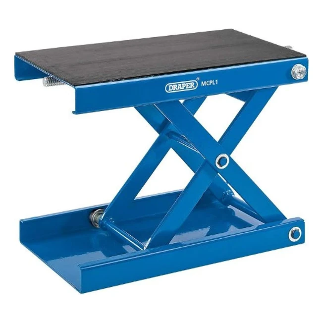 Acquista subito il Ponte Sollevatore Moto Draper 04991 da 450kg! Ideale per sollevare la tua moto in modo sicuro e pratico. Dotato di supporto a forbice adatto all'uso su pavimento o su un sollevatore per moto. Il tappetino in gomma sulla piattaforma previene danni alla parte inferiore della macchina. Con rulli a sfera per sollevamenti e abbassamenti fluidi. Confezione in cartone inclusa.