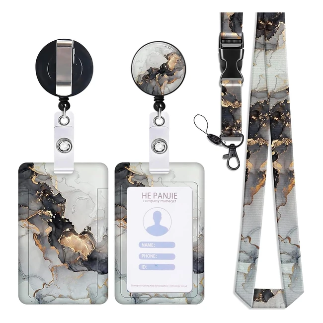 Porte-badge Zemolo avec cordon tour de cou, porte-cartes et enrouleur rétractable - Marbre gris