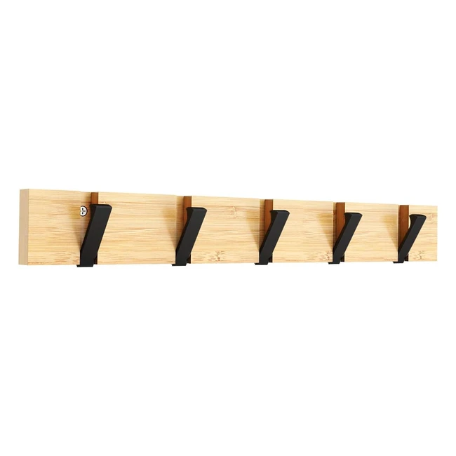 Portemanteau mural Anjuer, 5 crochets rétractables, robuste, planche de bambou, crochets noirs